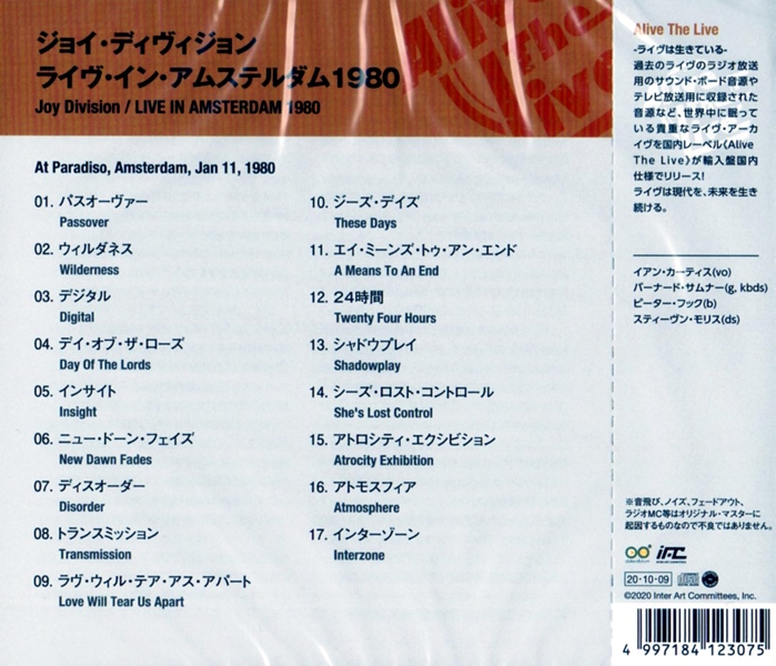 Passover Love will tear us apart Wildness These days Digital A means to an end Day of Hards Twenty four hours Insight Shadowplay New dawn fades She's lost control Disorder Atrocity exhibition Transmission Atmosphere Interzone Sleeve incorrectly gives concert date as Nov 1st 1980