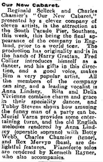 in Gibraltar and Egypt. Before they leave, the company performs in Southsea. Here is the write-up from The Stage