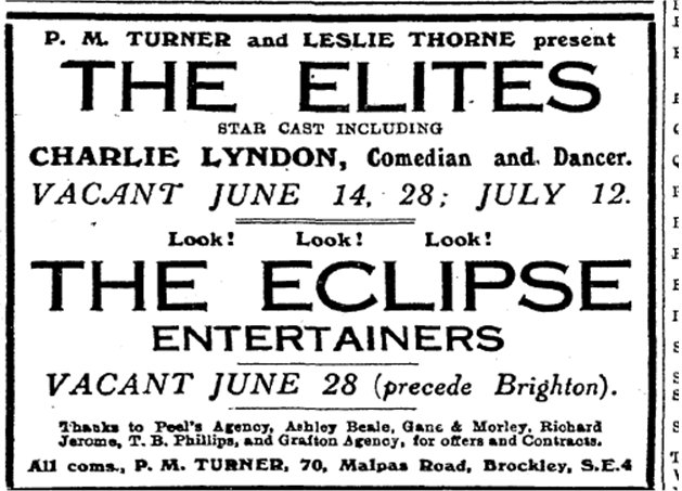Advert placed in The Stage on 5th February 1925