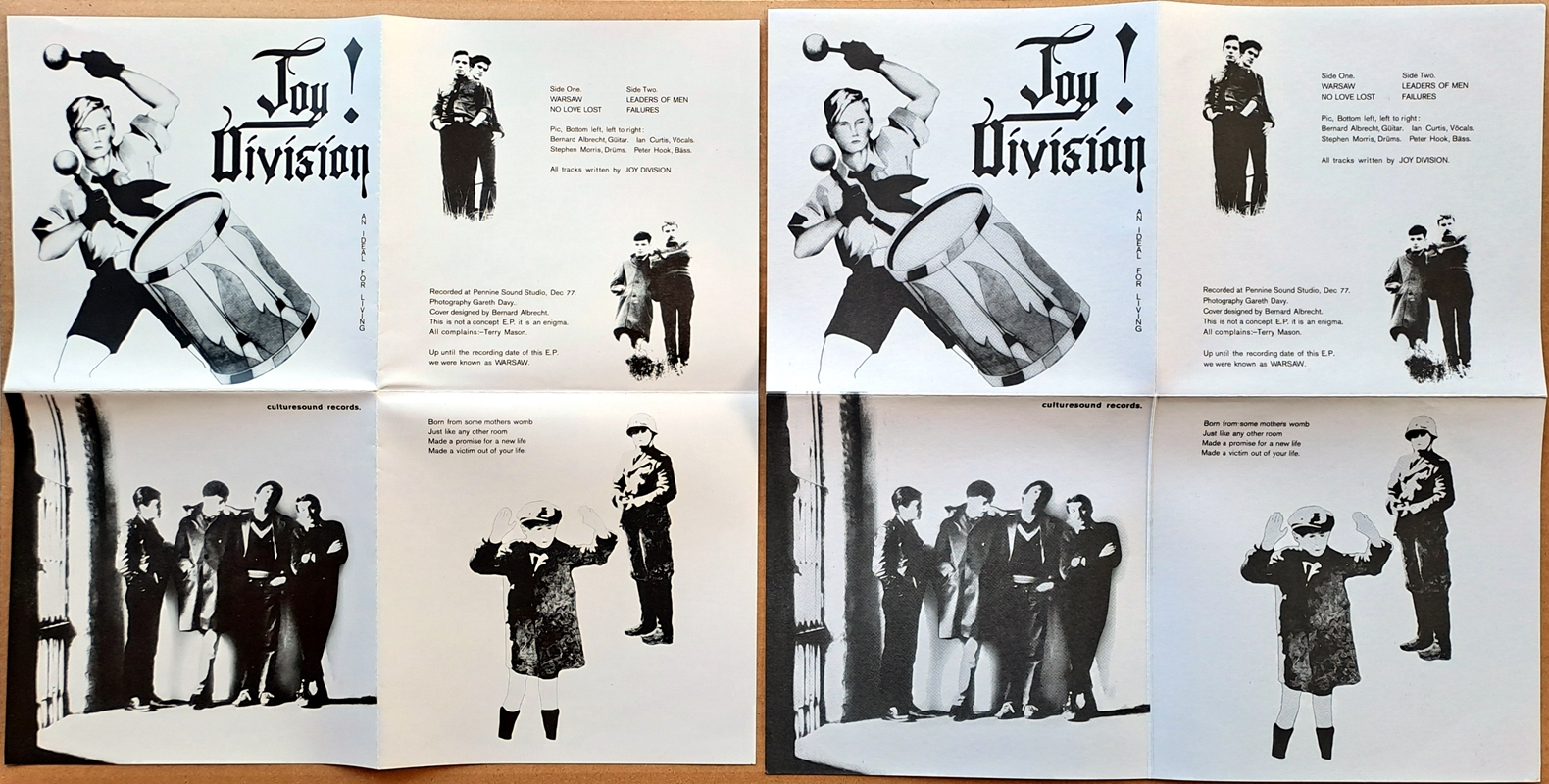 The record came with labels with the band name of "The Dallars". There were some "cut-lick&stick" red insert labels with "Joy Division" and the track titles on - you had to stick these labels over the top of the "Dallars" ones.