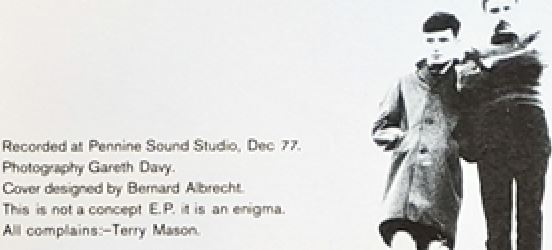 Includes 7" size double-sided printed insert with a live band photo (from Altrincham 14/3/79 by photographer Martin O'Neill) and the band name in gold lettering on one side and the song lyrics + web address of the record label and a contact email address on the other, and also a postcard size insert with another colourised band photo (from Stockport 28/7/79 by photographer Paul Slattery) and the band name in gold lettering on the front and "Limited edition 500 copies your copy is __" printed on the back, the individual number is hand-written in red marker.