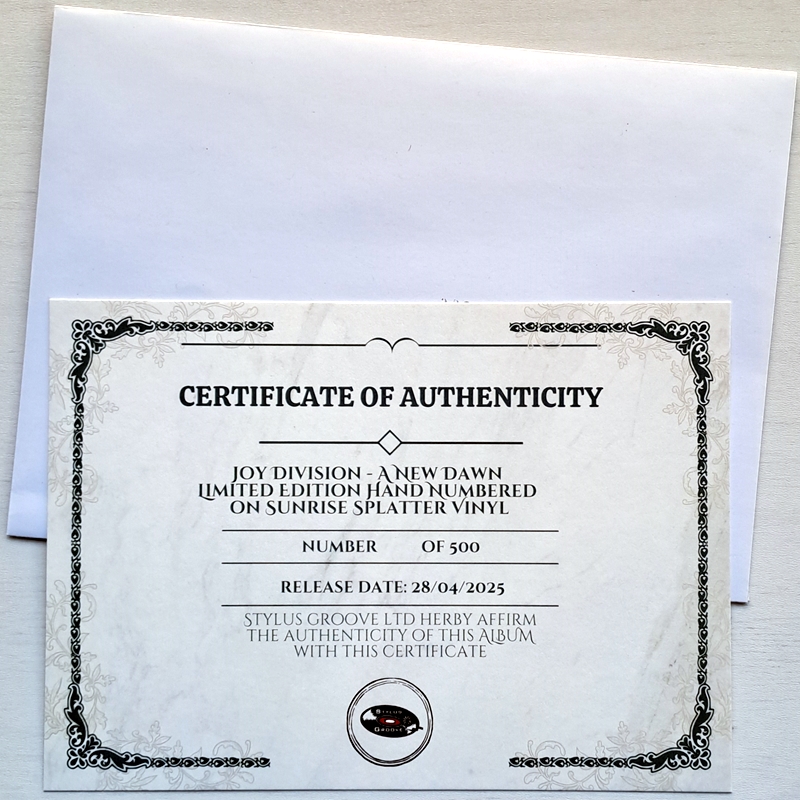 Number ___ (the number is stamped) of 500 Release date: 28/04/2025 Stylus Groove hereby affirm the authenticity of this album with this certificate.