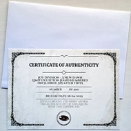 The first 10 copies include a numbered certificate in a plain white envelope with only the number stamped on the front, the certificate reads: