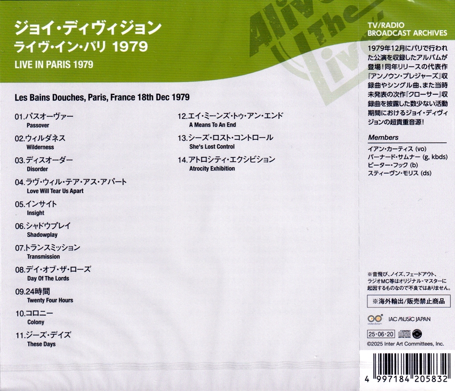 JOY DIVISION - LIVE IN PARIS 1979 (CD) IACD 11563 Alive The Live 2025Japanese CD released 2025
