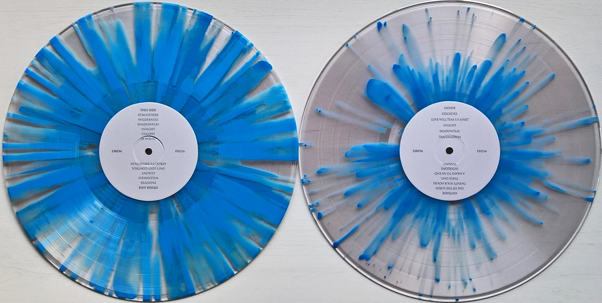- LP1: solid white vinyl / LP2: black (and a bit of grey/white) splatter vinyl with clear base
