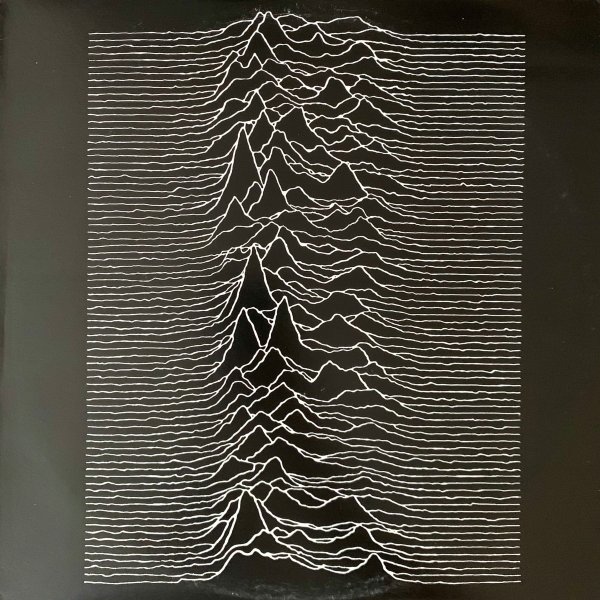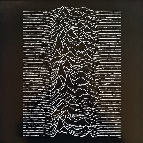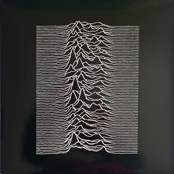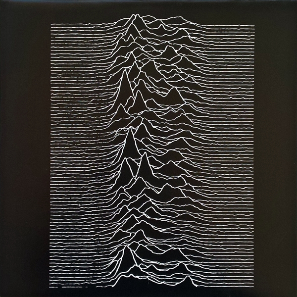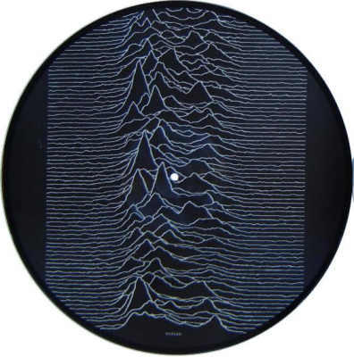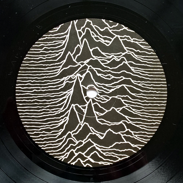 One plain black label and one with only a detail of the front cover pulsar image "wavy lines".
