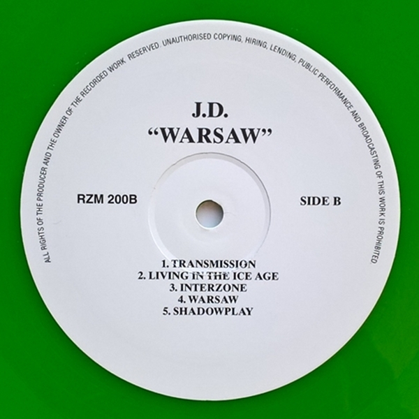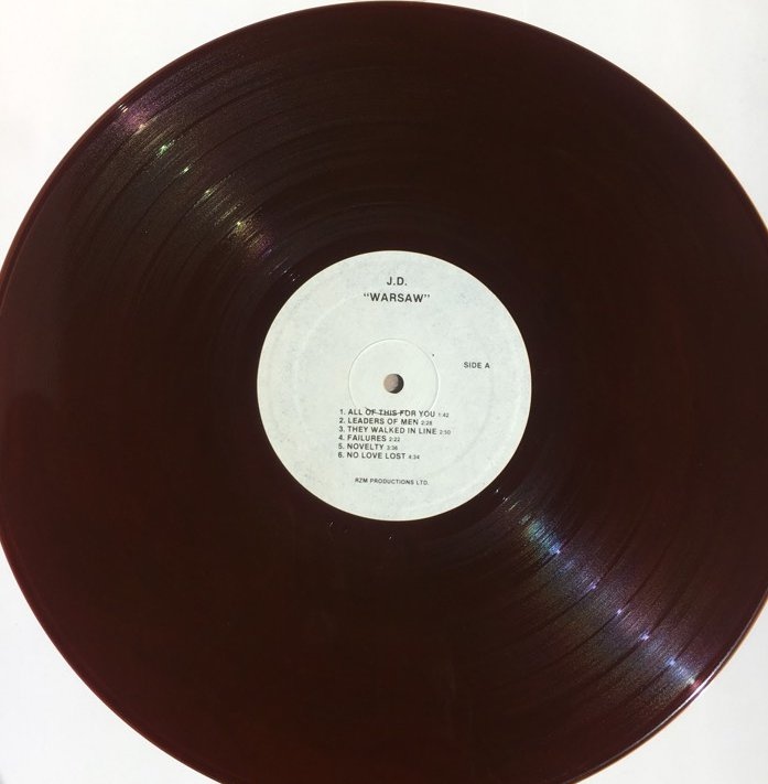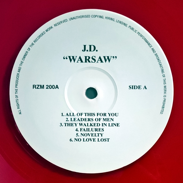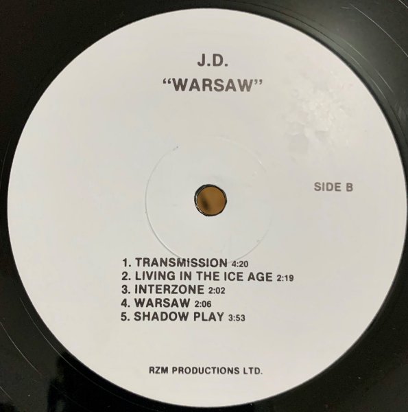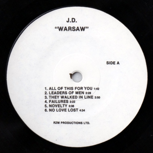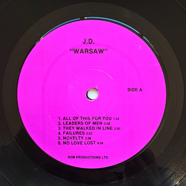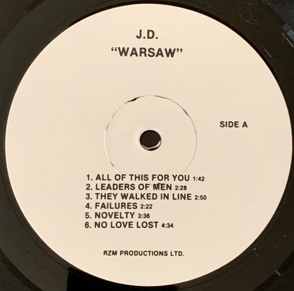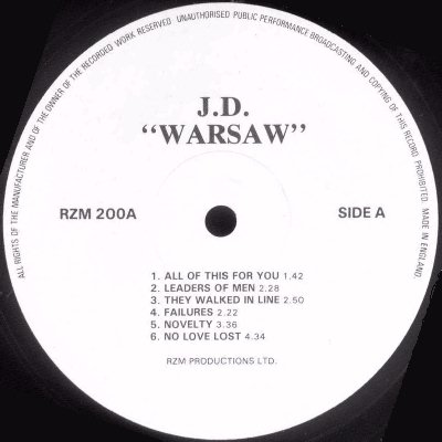The LP label says "J.D. 'Warsaw", lists the tracks, and has "RZM PRODUCTIONS LTD." at the bottom.