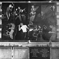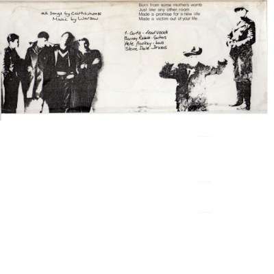 Insert: single-sided black sheet with the full track listing and Warsaw photo by Kevin Cummins, from Rafters 30 June 1977