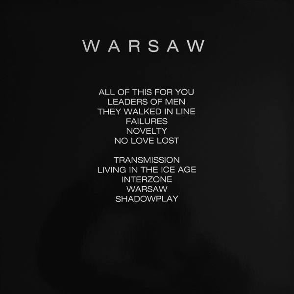 All of this for you Transmission The leaders of men Living in the ice age They walked in line Interzone Failures Warsaw Novelty Shadowplay No love lost
