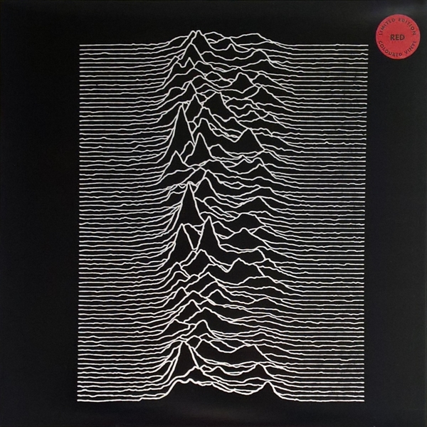 Black vinyl with plain white labels; green/lightly marbled yellow / orangey-red vinyl with plain black labels; and cloudy clear (sometimes described as "neon" or "glow in the dark") vinyl available both with plain black labels and also with printed picture labels (front cover image with the Unknown Pleasures wavy lines over it).