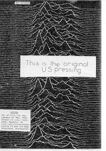 Front cover looks like most of these Warsaw sleeves, but the pulsar image is slightly smaller than before.