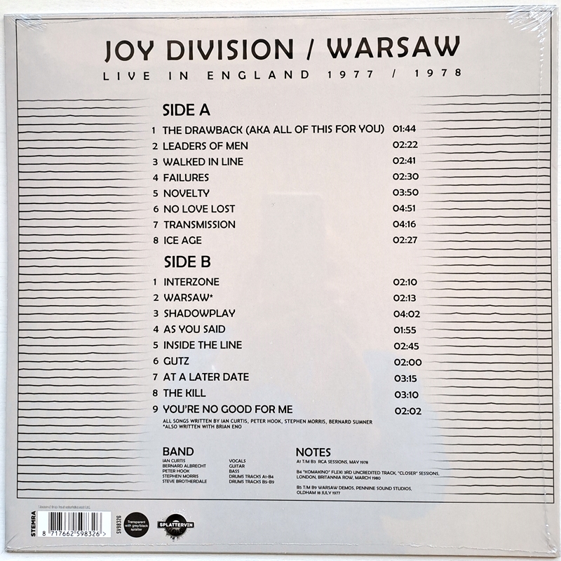 31. JOY DIVISION/ WARSAW - LIVE IN ENGLAND 1977 / 1978 (LP) SV98326 Splattervin 2025