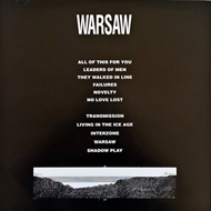 All of this for you Interzone The leaders of men Warsaw They walked in line Shadowplay Failures As you said Novelty Inside the line No love lost Gutz Transmission At A Later date Living in the ice age The kill You're No Good For Me This LP has a different track list to the standard Warsaw LPs, taken from the earlier Baby Face CD version 1994, and this became the standard set list for many subsequent Warsaw releases: